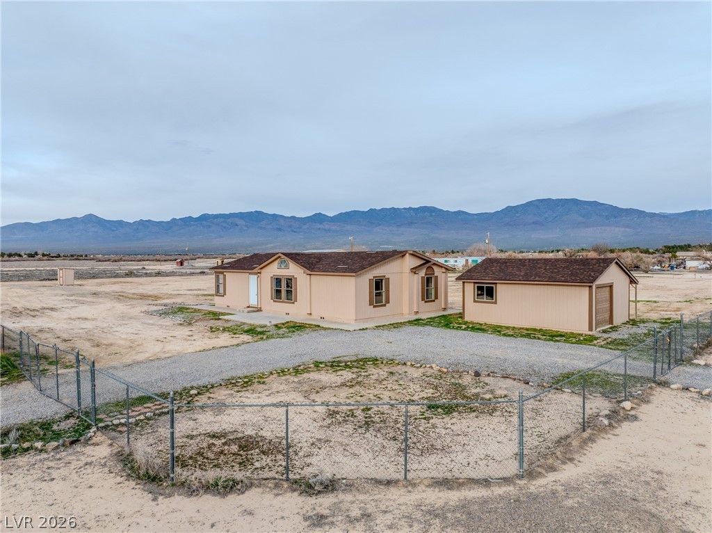Over 2 acres! Newly refurbished manufactured home in the desirable north end of Pahrump, just an hour from Las Vegas and minutes from local stores and services. With only a handful of nearby homes, the property offers generous space and wide-open surroundings. The land is fully enclosed with chain-link fencing and includes two RV gates, ideal for large vehicles or recreational equipment. Inside, the home features 3 bedrooms, 2 full baths, and extensive updates including new flooring, a new roof, fresh paint, and upgraded fans and light fixtures. A screened-in back patio provides a comfortable outdoor retreat, while sidewalks around the home add convenience and accessibility. The approx. 480 sq ft garage includes a partitioned workshop and built-in workbench, perfect for projects or storage. With its private well and septic system, this move-in-ready property blends modern improvements with the freedom of spacious Nevada living. Last but not least this home is not in the flood zone.